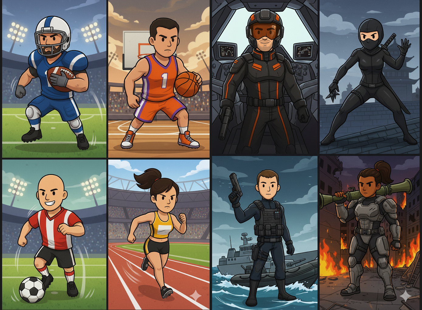 Equip your characters with specialized clothing that unlocks exclusive games and abilities.